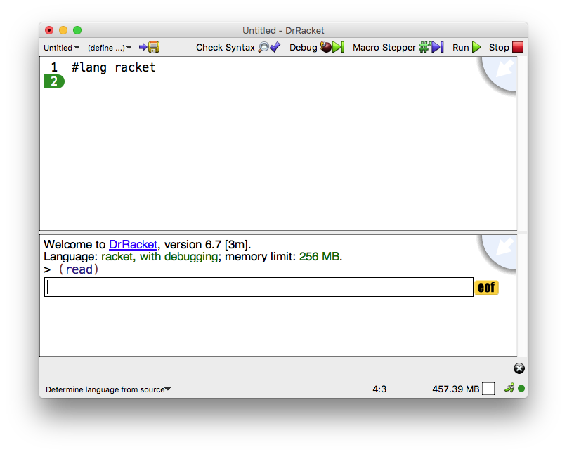 Many Racket programs avoid explicit input and output operations, obtaining input via direct function calls in the interactions window, and producing output by returning values. Other Racket programs explicitly print output for the user during evaluation using write or display, or explicitly request input from the user using read or read-char.