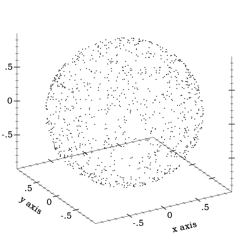 > (plot3d (points3d (map vector xs ys zs) #:sym 'dot) #:altitude 25)